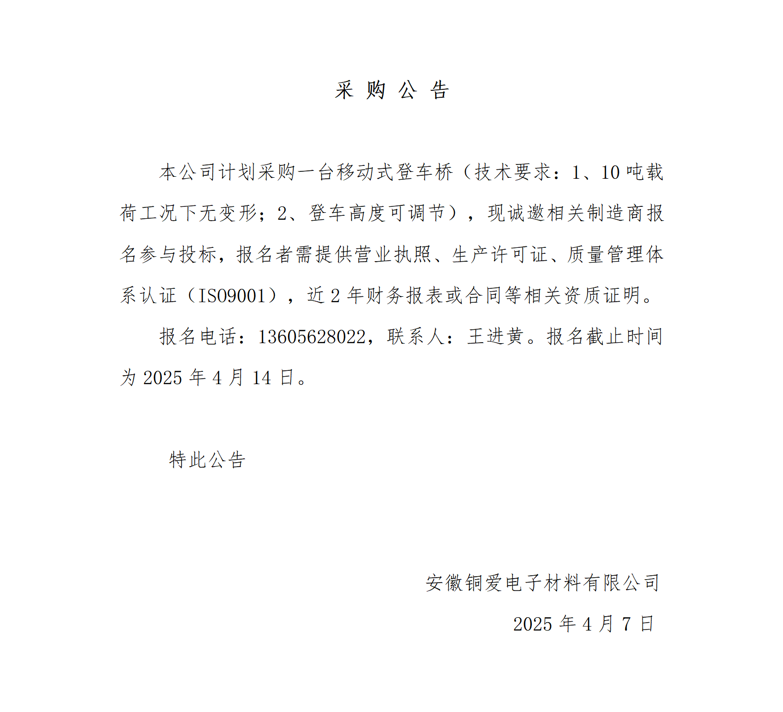 銅愛公司移動(dòng)式登車橋采購采購公告_01