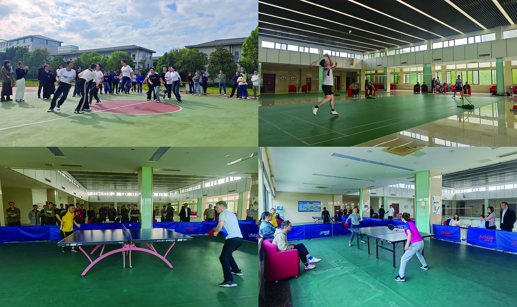 籃球、拔河、十人八字跳繩比賽項(xiàng)目中,隊(duì)員們團(tuán)結(jié)協(xié)作,配合默契,奮勇拼搏。乒、羽比賽項(xiàng)目中,運(yùn)動員們展現(xiàn)技藝,“乒”出風(fēng)采、誰“羽”爭鋒,盡情享受運(yùn)動帶來的快樂。